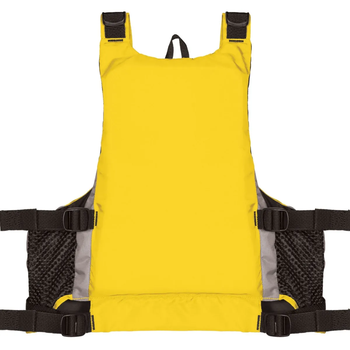 The streamlined design features breathable mesh across the lower back, which keeps you cool, plus neoprene shoulder pads for optimum comfort. Thanks to compact foam distribution and a thin foam insert in the back, this paddle sports life vest doesn’t limit your range of motion when paddling.