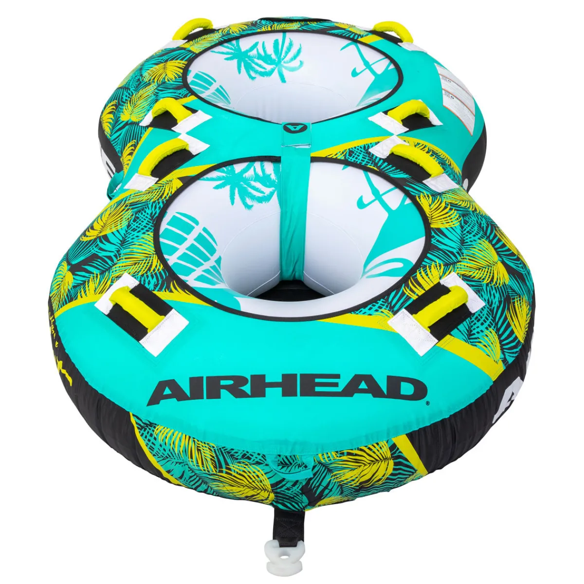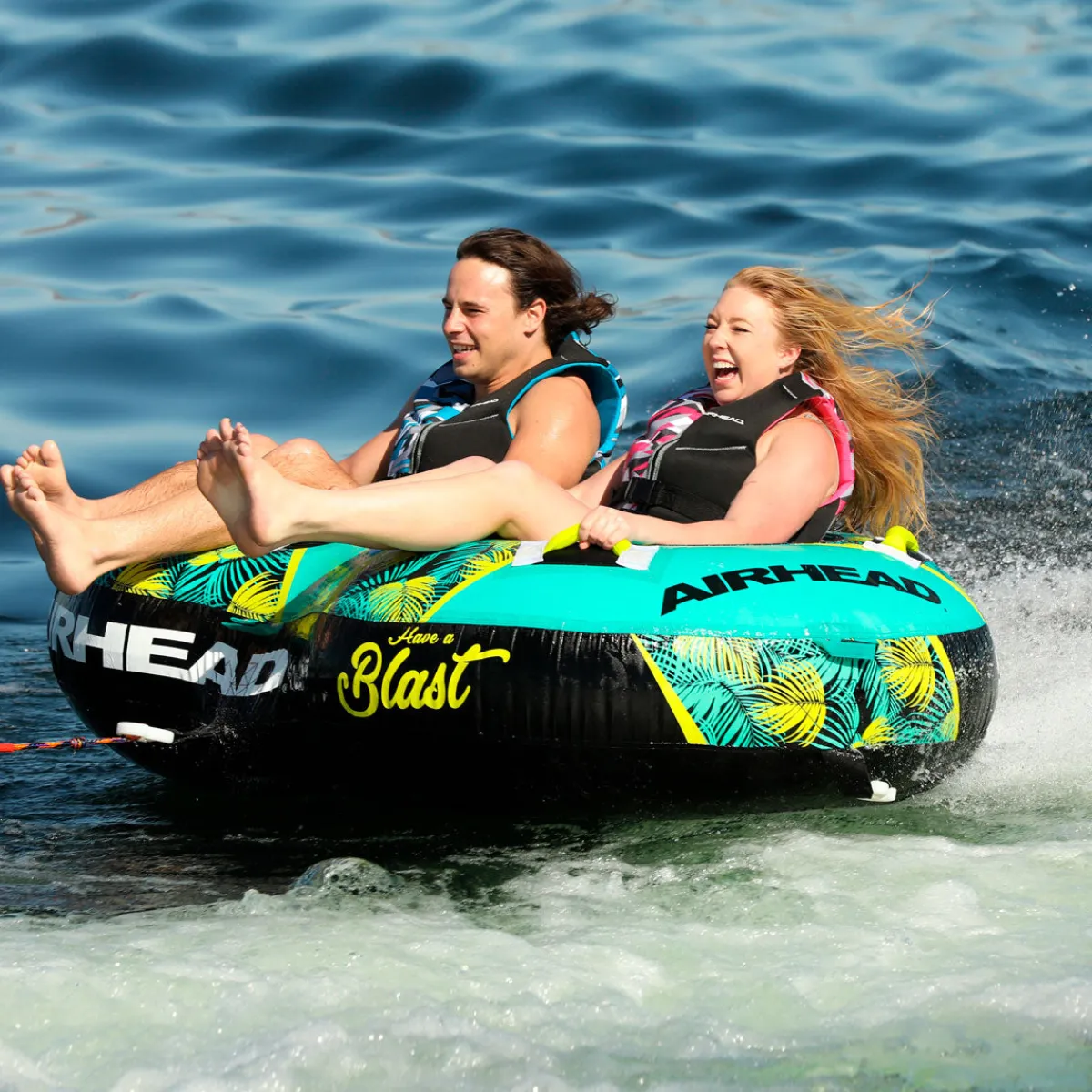 Few towable boat floats offer family fun like the Airhead Blast 2, our 2 person towable tube. Blast 2 boasts a red and teal tropical pattern, 8 neoprene comfort handles, and a self-draining floor that keeps riders upright no matter how much splashing happens.