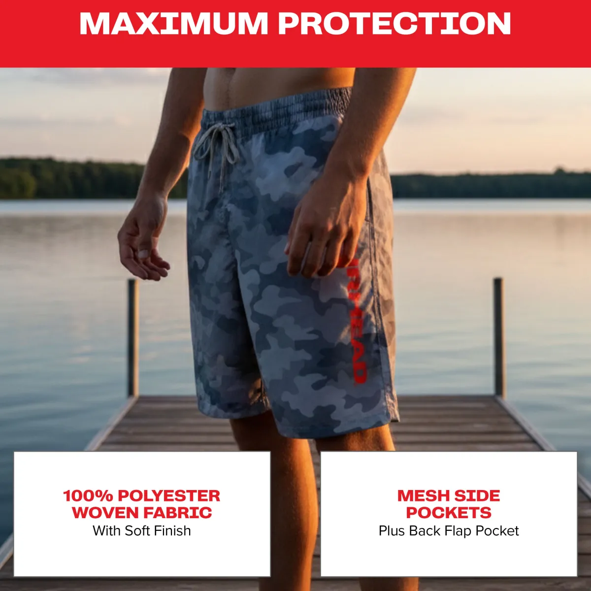 These durable Board Shorts are designed for action in and out of the water. They have a Polyester woven fabric with a soft finish. The shorts feature high-performance quick-dry and water-repellent properties. Closure is secured with a polyester drawstring and elastic waistband. Functionality is enhanced by 100% polyester mesh side pockets and a back flap pocket.