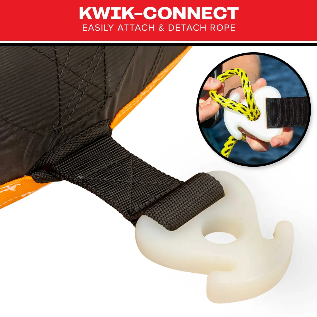 Hydro-X 2 is a 2-person towable tube optimized for peak performance. Unlike ordinary deck tubes, Hydro-X 2 is made with a tapered gusset design that slopes downward from the front to the back. This style provides an improved towing experience through more comfortable riding. The tapered edge also ensures maximum dexterity and control, both for towers and those being towed. Designed to withstand time from the inside out, Hydro-X 2 has a durable PVC bladder wrapped with a double-stitched nylon cover. The Kwik-Connect tow points ensure easy and secure hook-ups. Always easy to inflate and deflate with the patented Speed Safety Valve.