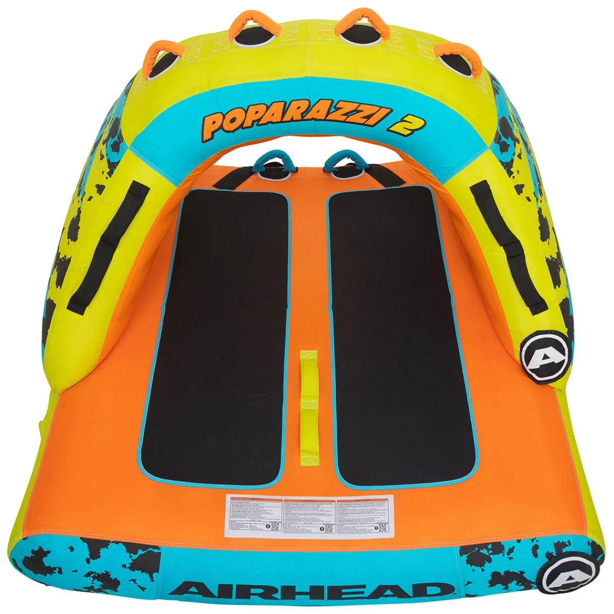 This Airhead Poparazzi 2 is a 2 person towable tube that wants to be seen. With a roof-like circle shape and a rocker bottom, taking this boat towable out on the lake is guaranteed to turn heads.