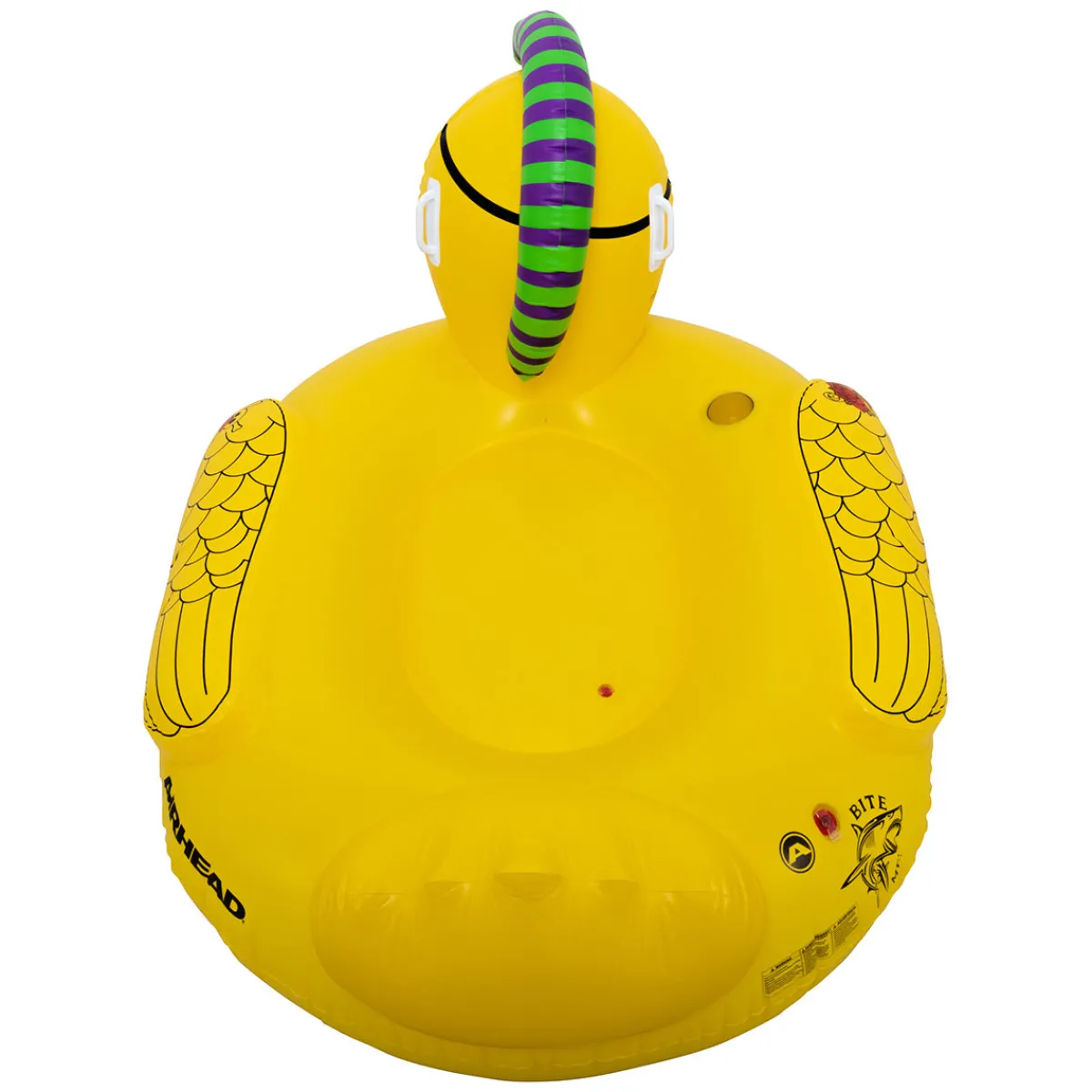 Ahoy, matey! Give your sea legs a rest with this Punk Duck plastic pool float. With a large yellow body, mohawk, eye patch, nose ring, and tattoos, this bad buccaneer will quickly become your go-to inflatable duck pool float for any party.