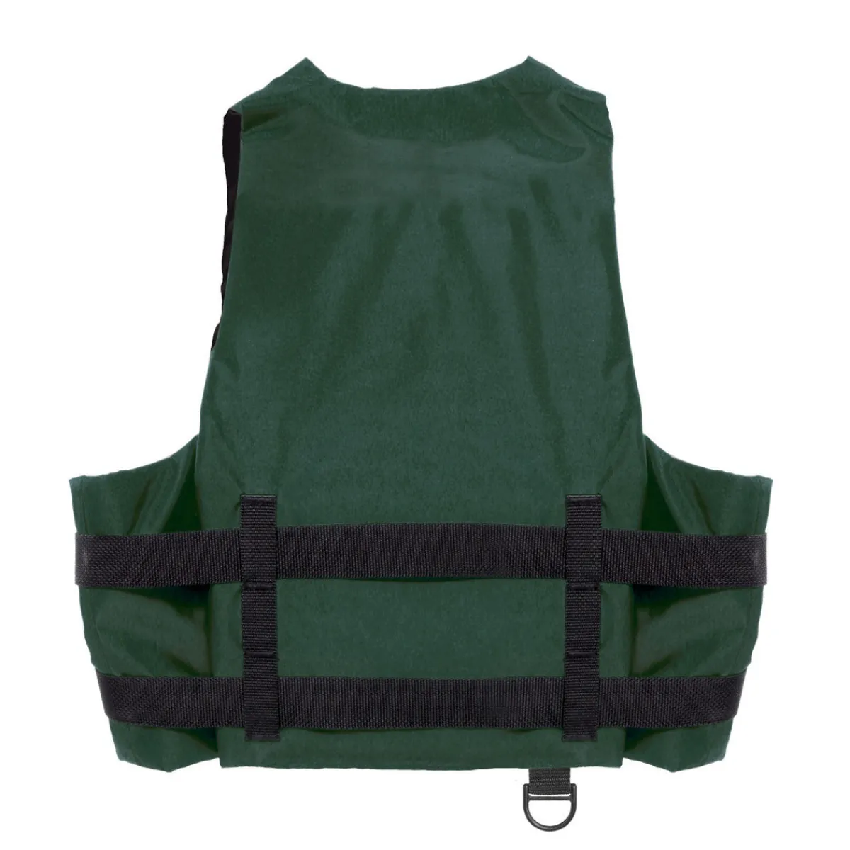Find two large pockets on the front for stashing away essentials; plus, the handy D-ring makes it easy to attach extras. Opt for hunter green for a subdued, natural look, or choose the youth camo life jacket for under-the-radar paddling.
