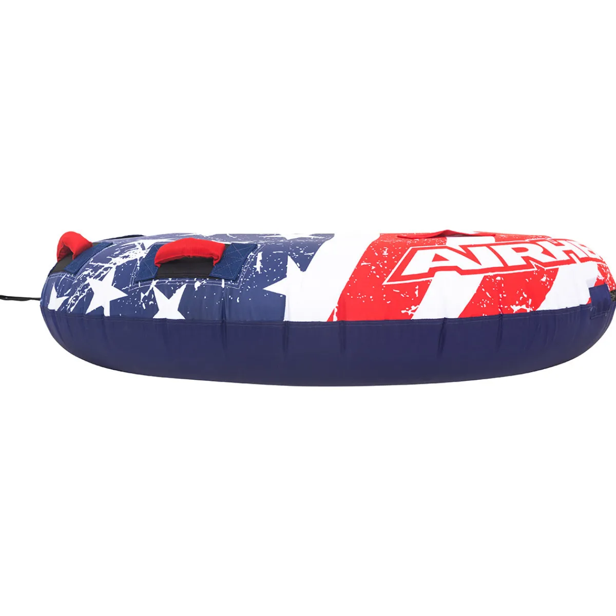 Take the rugged PVC bladders, which are entirely covered with heavy duty, double-stitched nylon covers that resist wear and tear. Unlike other boat towables, Stars & Stripes features a thin profile that makes it easy to board and disembark. The Stars & Stripes also features deluxe handles and EVA knuckle guards for comfort and security at any speed.