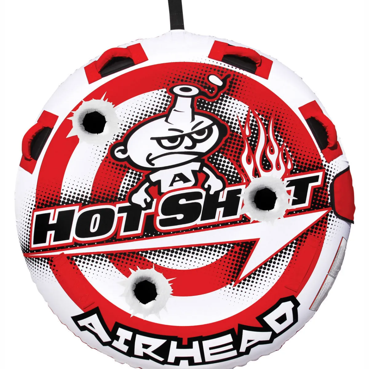 The Airhead Hot Shot is a 2 person towable tube that emphasizes speed and agility. This deck tube features a thin profile that glides along the water like a hockey puck on ice. Hot Shot riders love the shape of this inflatable tube, which makes it easy to board from the water.