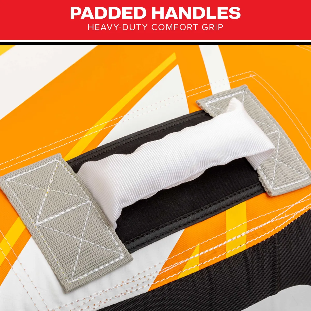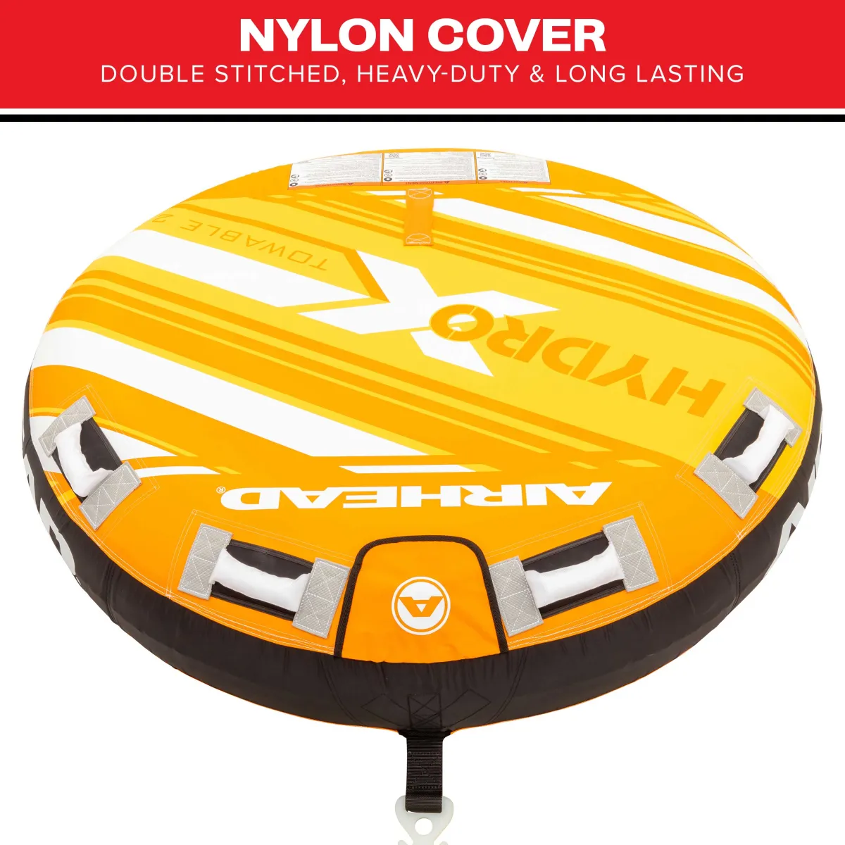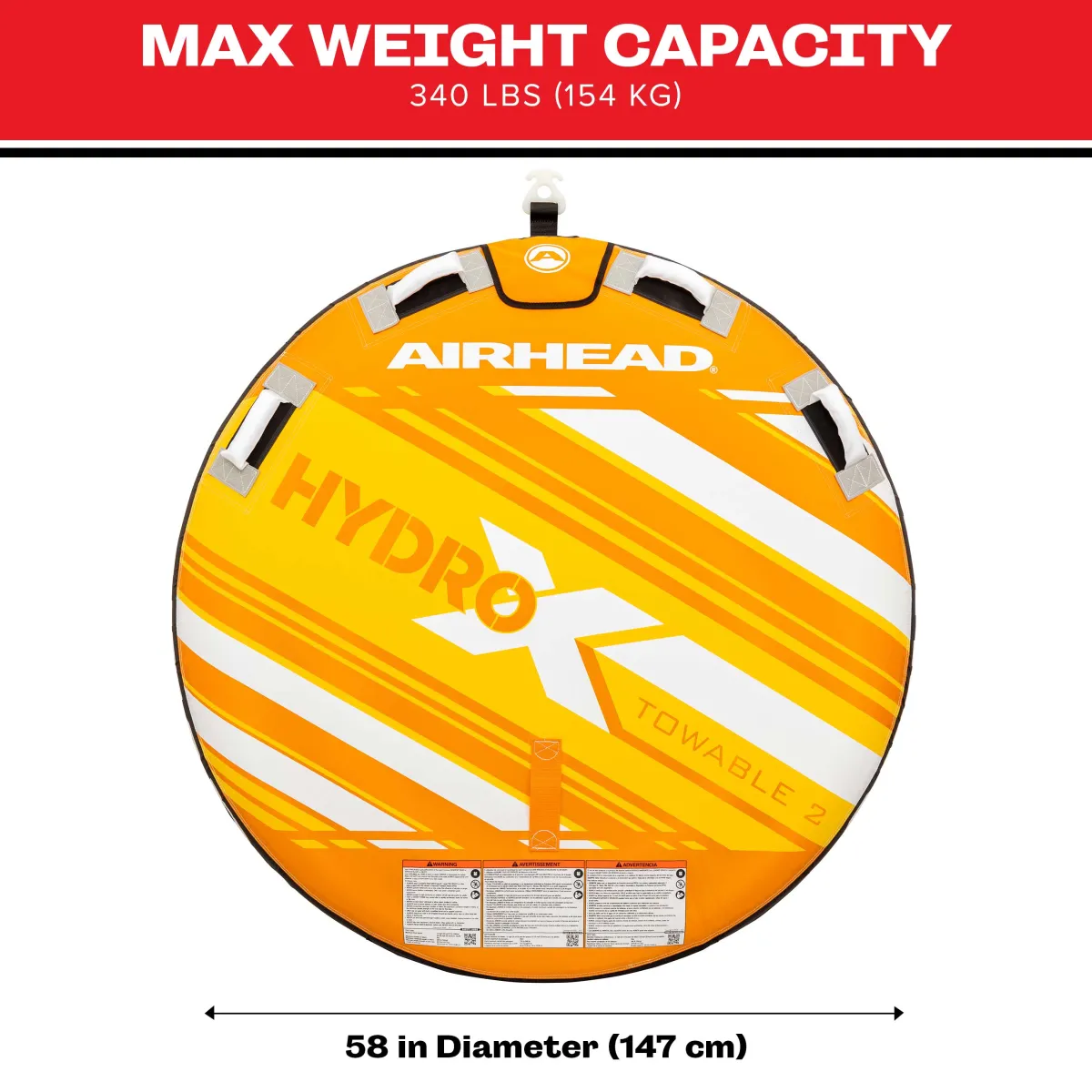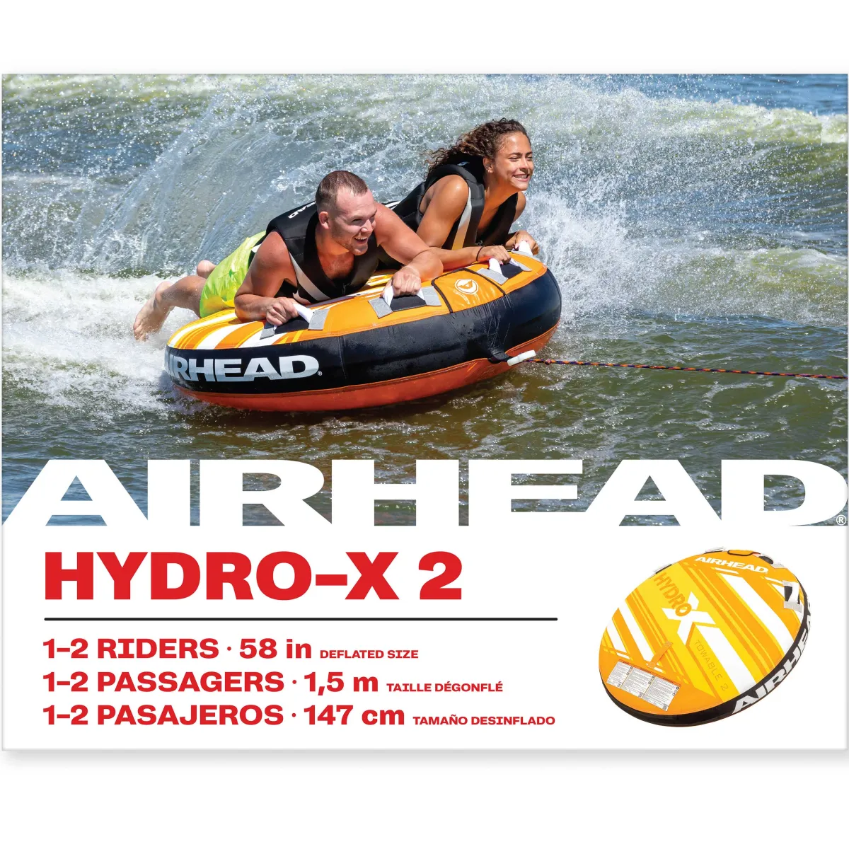 Hydro-X 2 is a 2-person towable tube optimized for peak performance. Unlike ordinary deck tubes, Hydro-X 2 is made with a tapered gusset design that slopes downward from the front to the back. This style provides an improved towing experience through more comfortable riding. The tapered edge also ensures maximum dexterity and control, both for towers and those being towed. Designed to withstand time from the inside out, Hydro-X 2 has a durable PVC bladder wrapped with a double-stitched nylon cover. The Kwik-Connect tow points ensure easy and secure hook-ups. Always easy to inflate and deflate with the patented Speed Safety Valve.