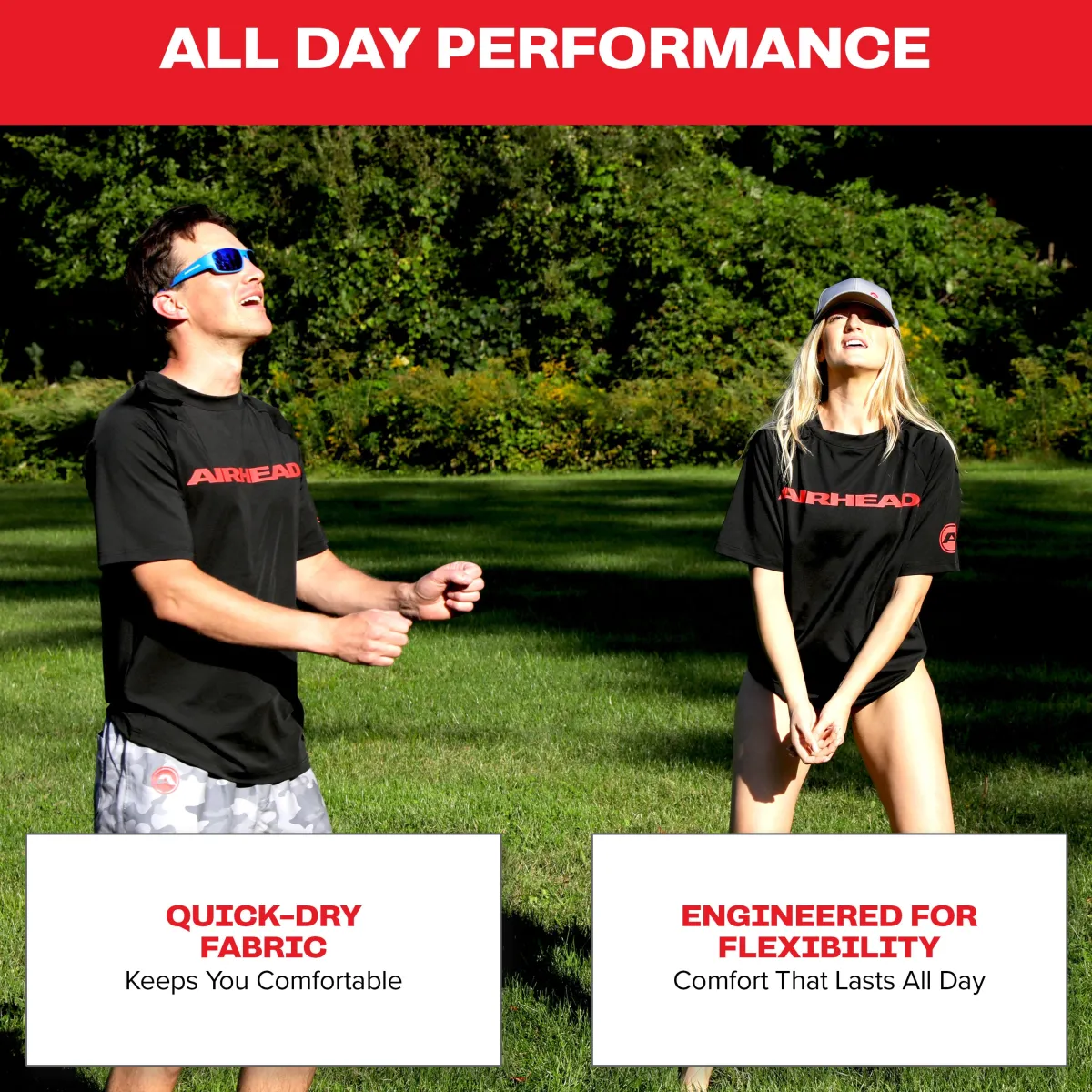 Engineered to be quick-dry, breathable, and flexible.